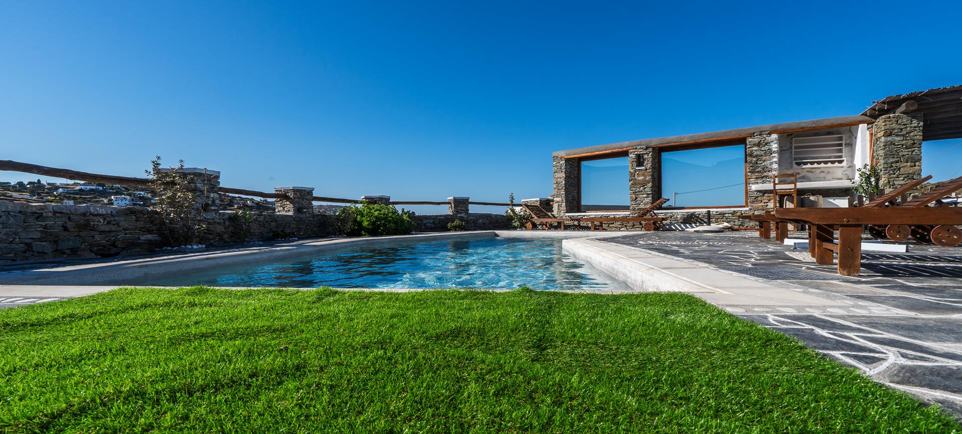 Plakoto House consists of 3 bedrooms, 2 bathrooms, a big private swimming pool with sea view, a fully equipped kitchen, a laundry room, a dining room, a living room, car parking area, flower garden and a big veranda with mountain and sea view.