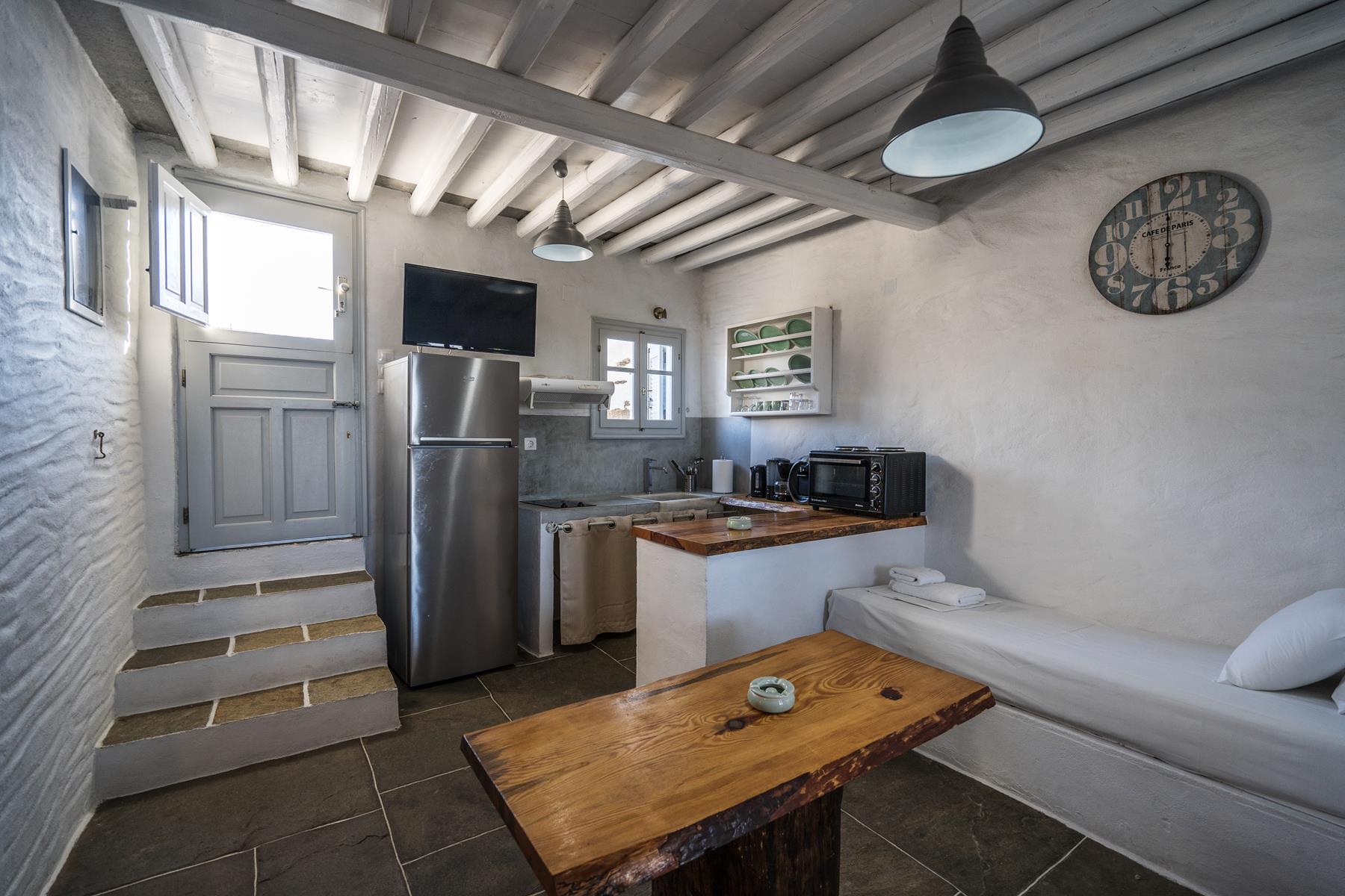 Windmill Arades combines all this philosophy of affinity, simplicity and attention to the details in an environment which is Sifnos at its best! It is situated just 600 metres from traditional Apollonia, near the centre of the island, with an easy access to necessary facilities (supermarket, gas station at 100 m distance) and it will be the starting point of the exploration of this magical place.